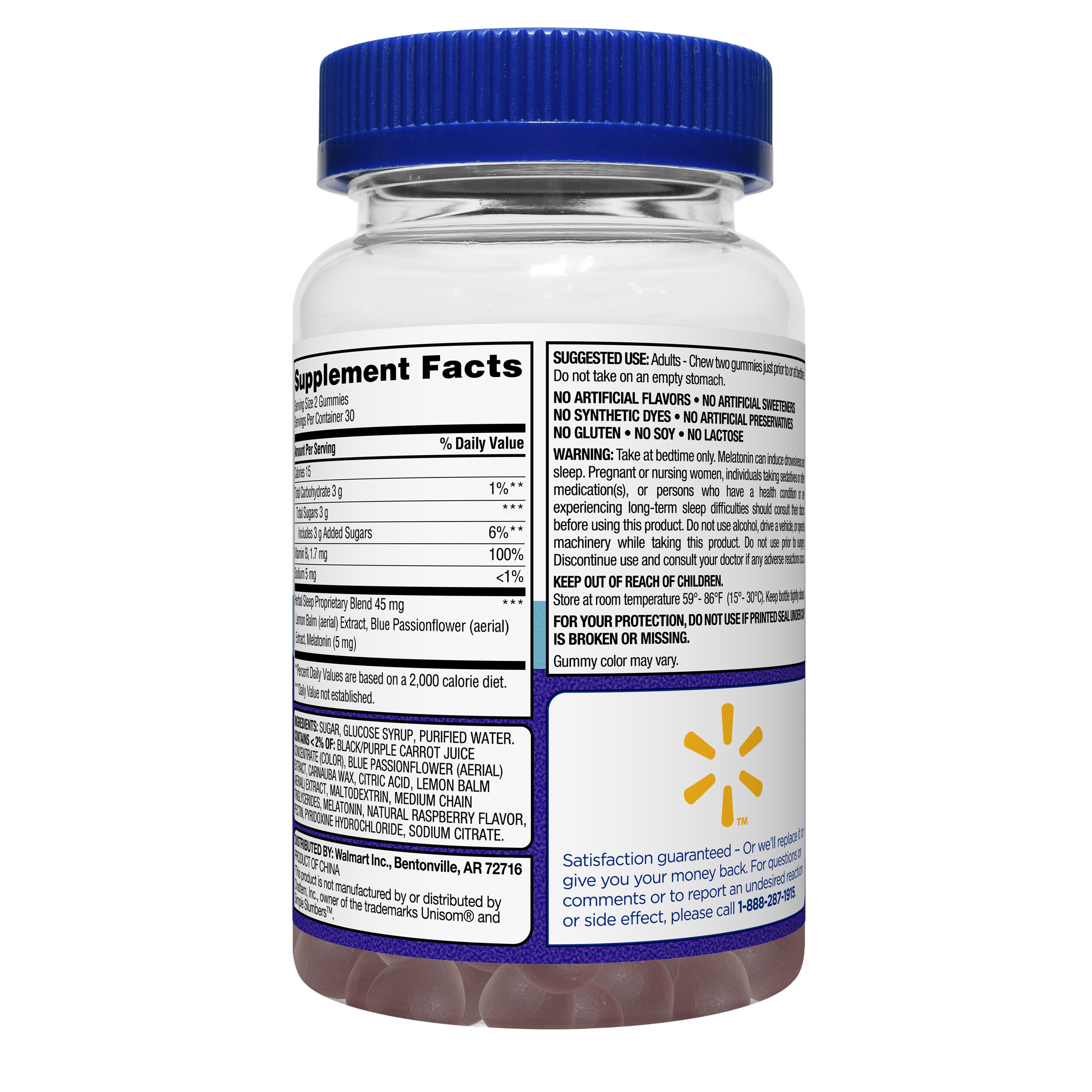 Our Equate Drug-Free Sleep Support* Gummies are a simple and great-tasting way to fall asleep faster; wake up less; and feel refreshed in the morning.* One serving size of 2 gummies delivers 5 mg of melatonin to promote healthy sleep; passionflower and lemon balm to help soothe and calm the mind; and vitamin B6 to help support brain health.* These gummies feature a delicious raspberry flavor. They are also drug-free and non-habit forming. You can rest assured that Equate Drug-Free Sleep Support* Gummies Dietary Supplement; Raspberry Flavor is produced with strict quality guidelines and is backed by our quality guarantee. Simply take two gummies just prior to or at bedtime to help promote healthy and restful sleep.*