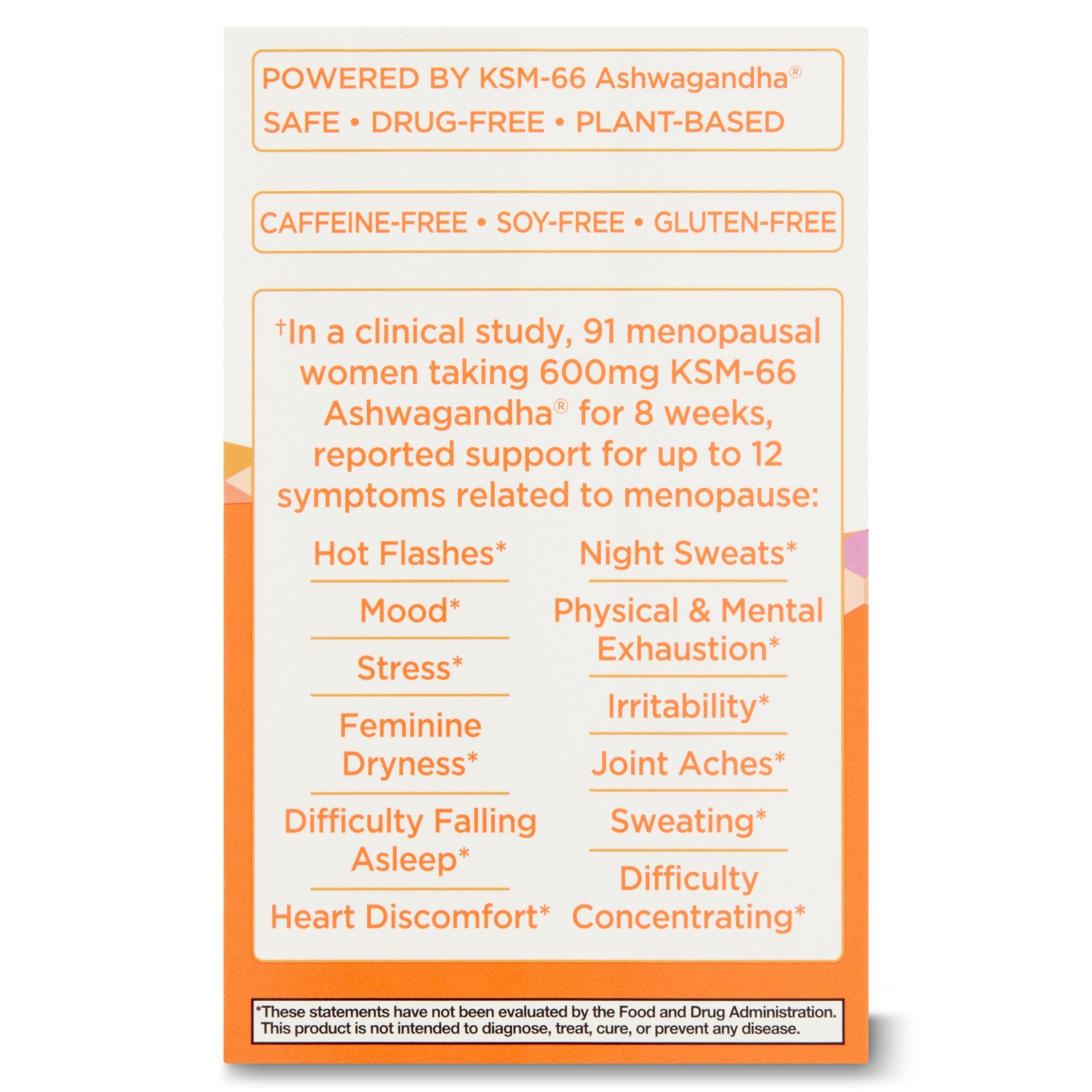 Equate Multi-Symptom Menopause Formula* with Clinically Tested KSM-66 Ashwagandha. Support for up to 12 symptoms related to menopauseꝉ: