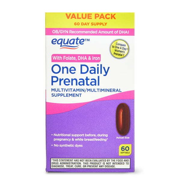 Equate One Daily Prenatal Softgels Multivitamin/Multimineral Supplement;  60 Count Equate One Daily Prenatal Softgels Multivitamin/Multimineral Supplement;  60 Count Equate One Daily Prenatal Softgels Multivitamin/Multimineral Supplement;  60 Count