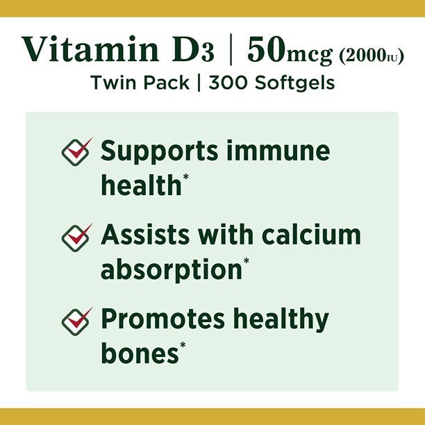 Immune Support: 300-count; 2000Iu Vitamin D3 Softgels In A Twin Pack For Immune Health.* Vitamin D By Nature’s Bounty May Assist The Immune System By Helping To Regulate T And B-lymphocytes.* Vitamin D3 Is A More Potent Form Of Vitamin D.