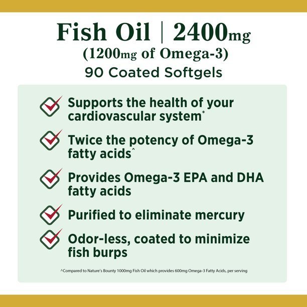 Nature's Bounty Fish Oil Softgels;  Double Strength;  2400 mg;  90 Count Nature's Bounty Fish Oil Softgels;  Double Strength;  2400 mg;  90 Count Nature's Bounty Fish Oil Softgels;  Double Strength;  2400 mg;  90 Count