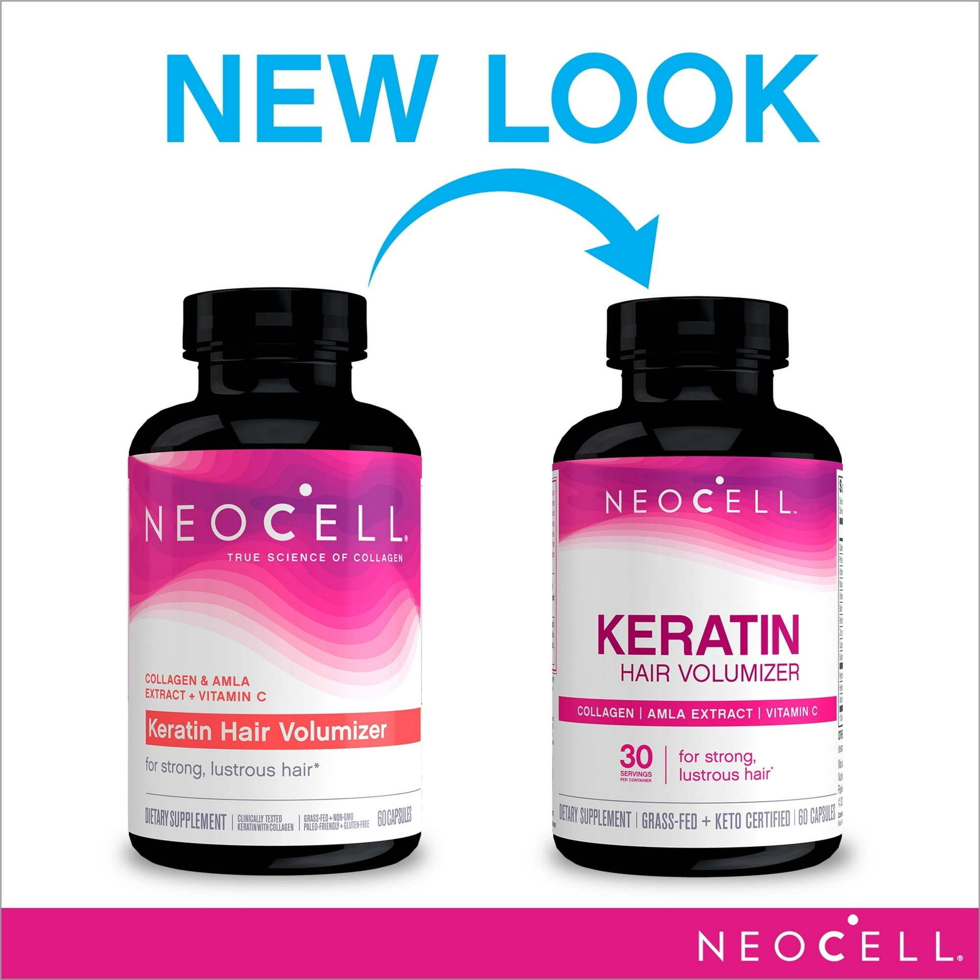 NeoCell Keratin Hair Volumizer Capsules are formulated to help you achieve strong, lustrous hair and beautiful skin (1). Formulated with keratin, these hair care gummies help enhance hair strength and increase luster (1). Hydrolyzed collagen peptides are easier for your body to absorb, providing nutritional support for skin, hair and nails (1). These NeoCell collagen and keratin capsules also contain Amla extract, a source of vitamin C, to support hair health for optimal collagen formation (1). IGEN Non-GMO tested (2), this supplement is gluten-free and contains no soy, wheat, lactose or artificial flavor. Simply take two of these collagen supplement capsules daily as part of your regular hair care and hair products routine. Since 1998, NeoCell has been following the science. The earliest studies on collagen and its role in skin and joint health were enough to get us started and weve stayed in step, if not ahead of, the science ever sinceresearching sources and the most effective forms of collagen so you can be your best you, every day.(1) These statements have not been evaluated by the Food and Drug Administration. This product is not intended to diagnose, treat, cure or prevent any disease.(2) This product does not contain common GE genes or proteins. Visit igenprogram.com.
