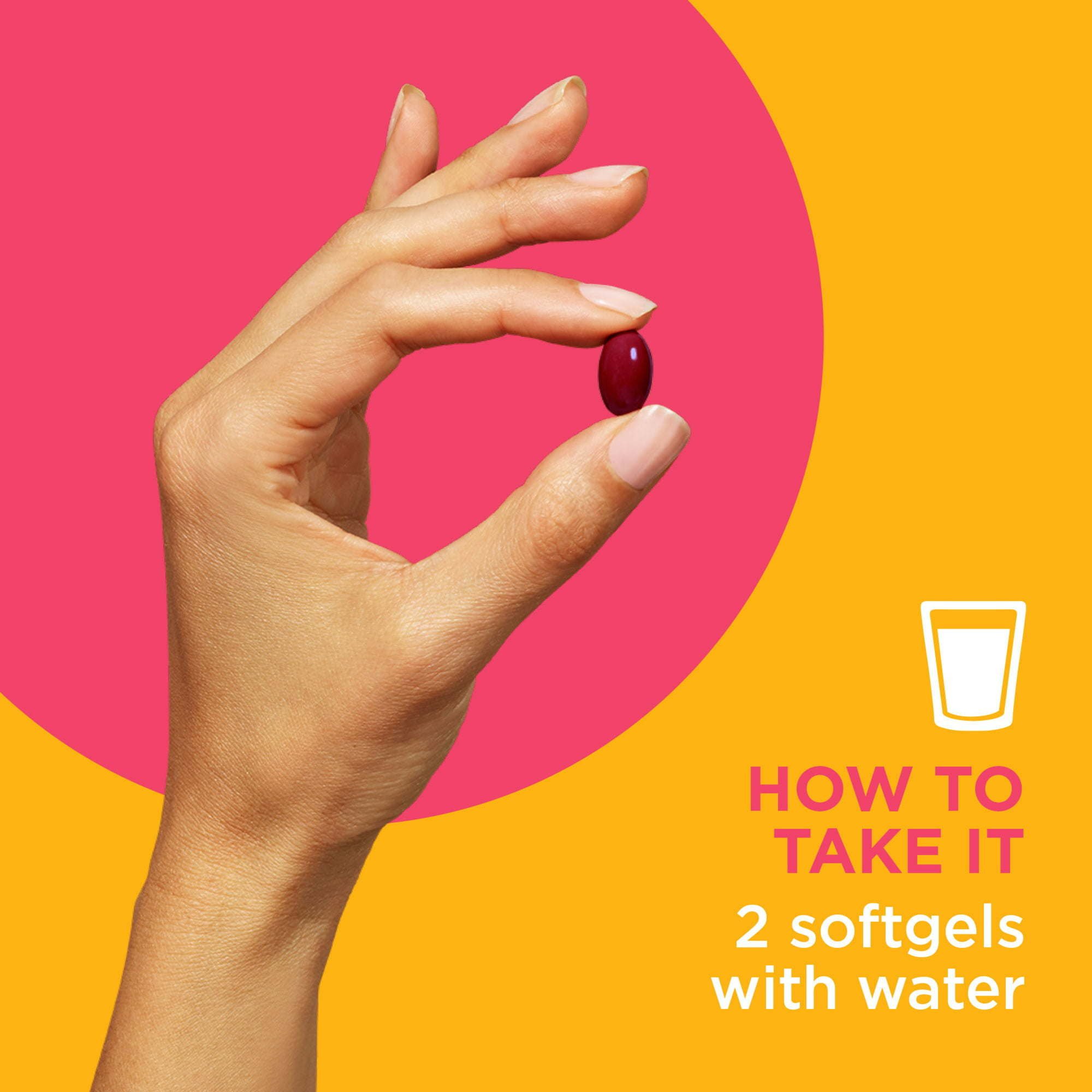 How to take: Adults, take 2 softgels with water daily. Take up to 4 softgels for extra support. Swallow whole.