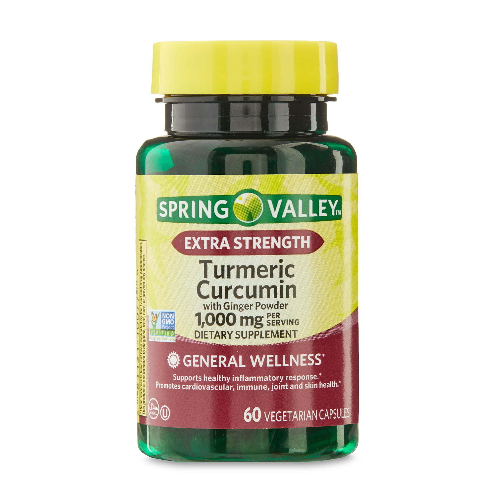 Spring Valley Turmeric Curcumin with ginger powder; Extra Strength; Vegetarian; kosher; halal;Non-GMO;1,000mg per serving; 60ct.
