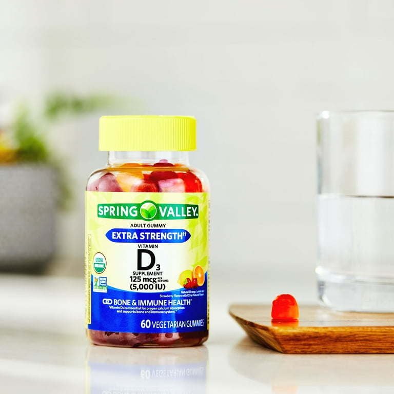 Spring Valley Extra Strength Vitamin D3 Bone & Immune Health Dietary Supplement Vegetarian Gummies, 125 mcg (5,000 IU), 60 Count
