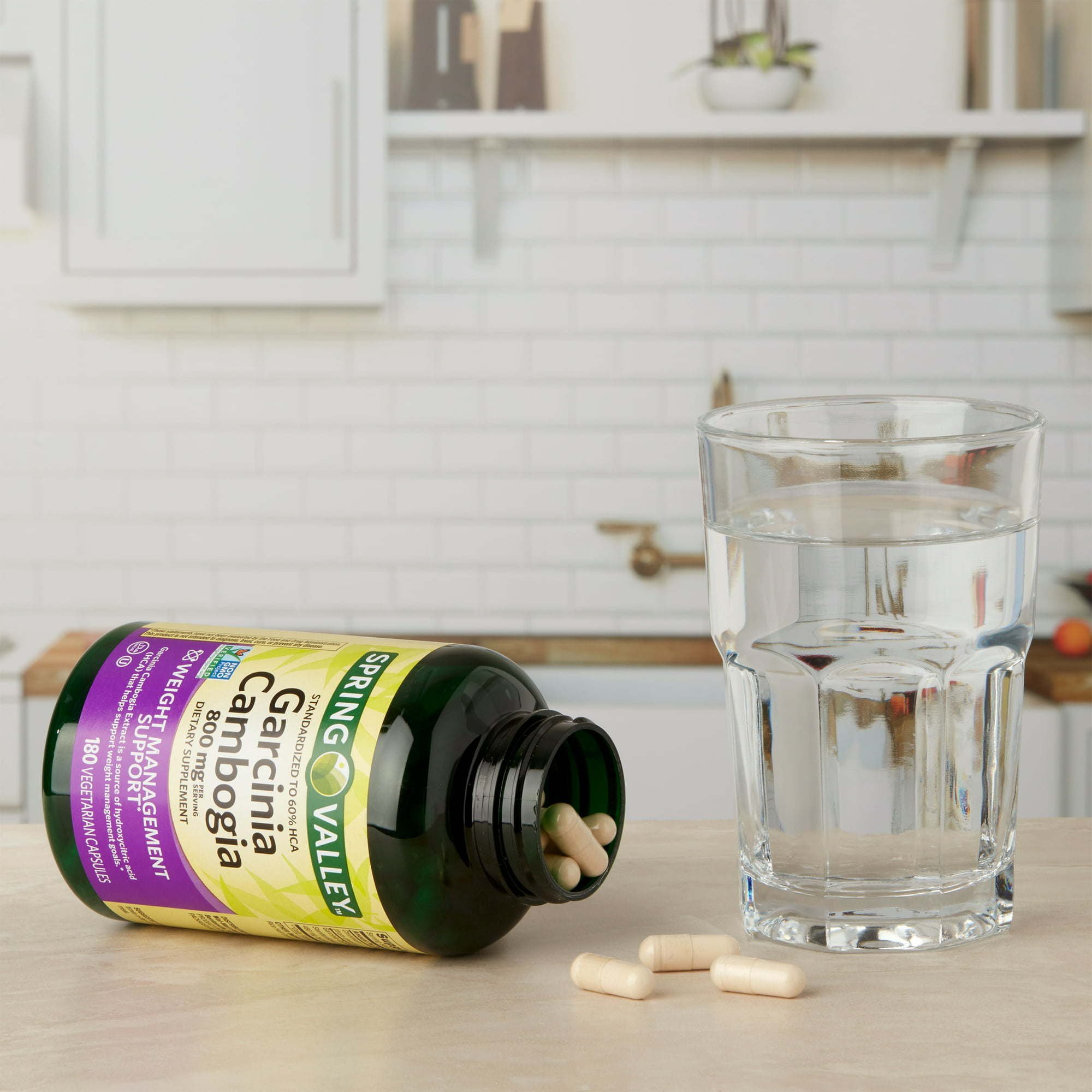 Our Spring Valley Garcinia Cambogia Dietary Supplement; 800 mg contains garcinia cambogia extract; a source of hydroxycitric acid (HCA). HCA may help support your weight management goals. This supplement contains no gluten; yeast; wheat; milk or milk derivatives; lactose; sugar; soy; artificial color; or artificial flavor. The recommended dosage is 2 capsules 3 times a day; 30 to 45 minutes before each meal. You can rest assured that our Spring Valley Garcinia Cambogia Dietary Supplement; 800 mg is produced with strict quality guidelines and is backed by our quality guarantee.