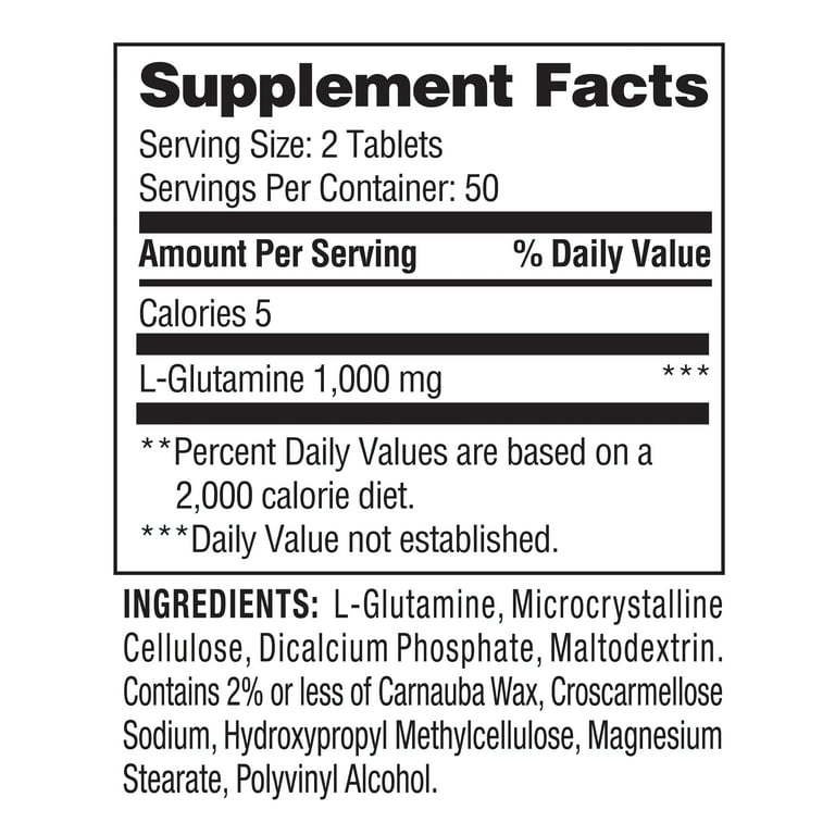 Spring Valley L-Glutamine Tablets Dietary Supplements, 500 mg, 100 Count Spring Valley L-Glutamine Tablets Dietary Supplements, 500 mg, 100 Count Spring Valley L-Glutamine Tablets Dietary Supplements, 500 mg, 100 Count