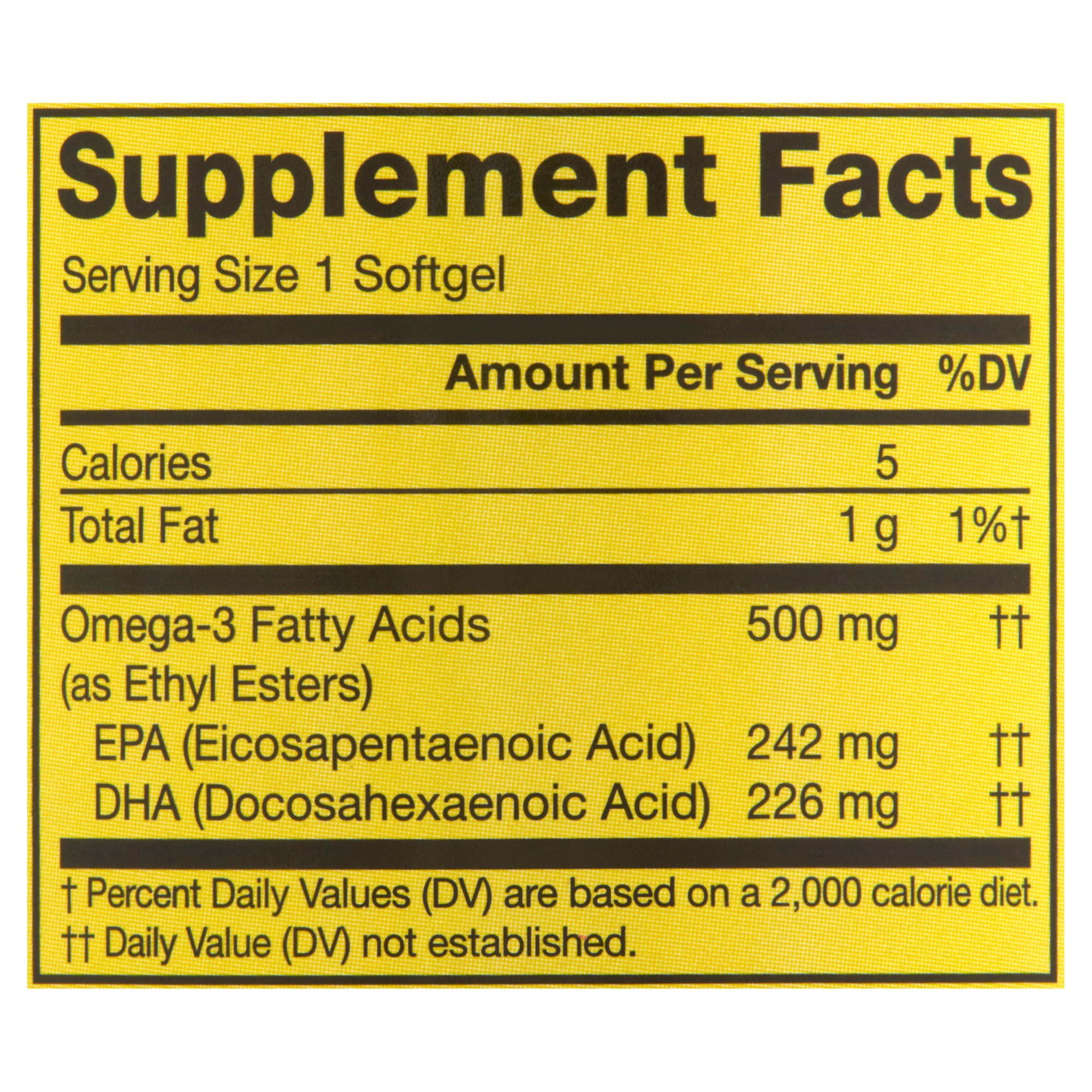 Spring Valley Natural Lemon Flavor Omega-3 Fish Oil Dietary Supplement; 500 mg is a dietary supplement designed to improve your general and heart health. The suggested adult dosage is simply one softgel per day; preferably with a meal. These softgels are free from gluten; yeast; wheat; soy; milk or milk derivatives; lactose; sugar; artificial colors or flavors; and crustacean shellfish. You can rest assured that Spring Valley Natural Lemon Flavor Omega-3 Fish Oil Dietary Supplement; 500 mg is produced with strict quality guidelines and backed by our quality guarantee.