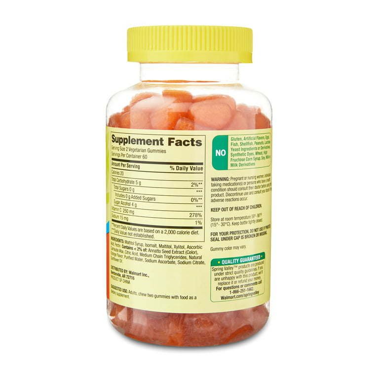Spring Valley Zero Sugar Vitamin C Gummies Dietary Supplement, 250 mg, 120 Count Spring Valley Zero Sugar Vitamin C Gummies Dietary Supplement, 250 mg, 120 Count Spring Valley Zero Sugar Vitamin C Gummies Dietary Supplement, 250 mg, 120 Count