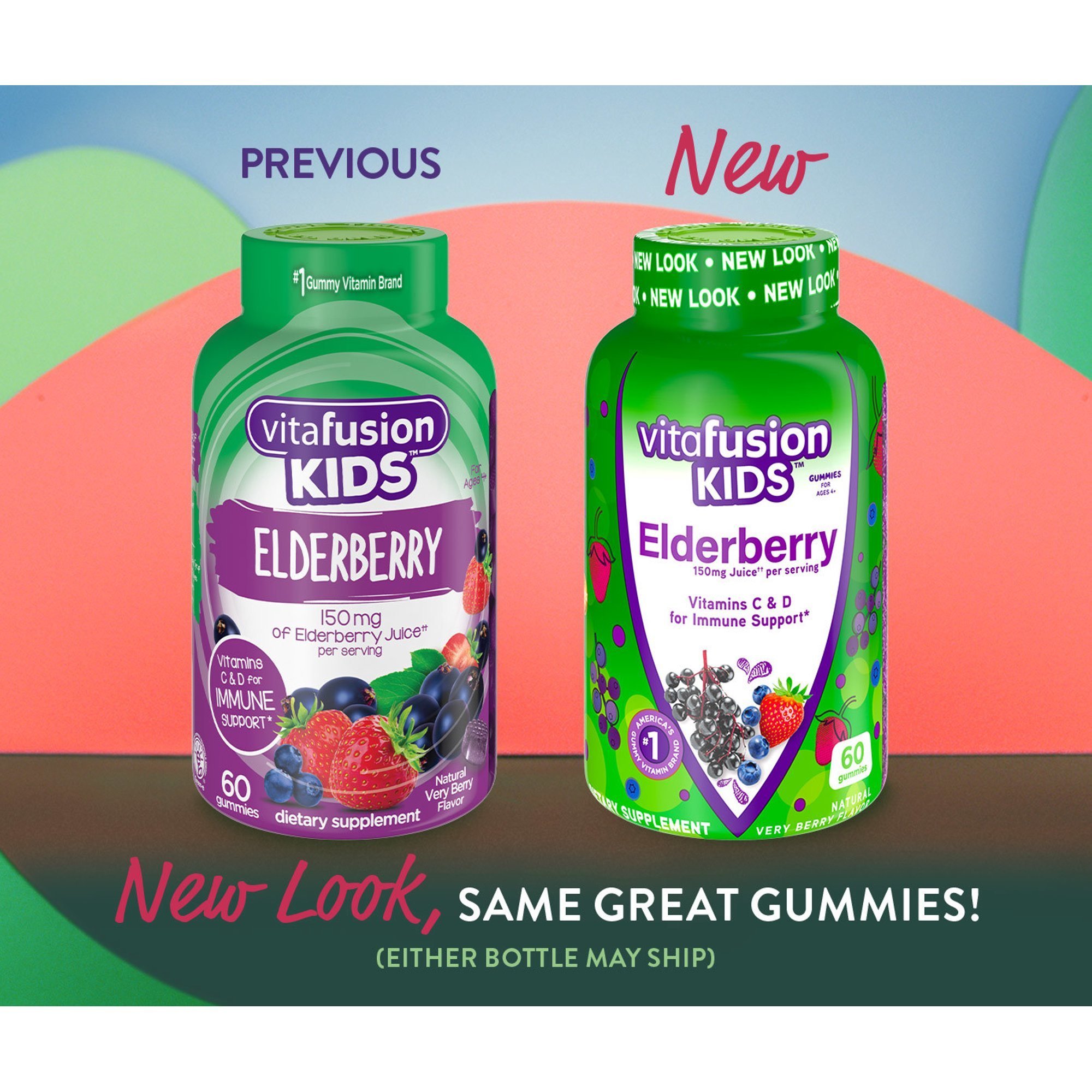 New from vitafusion™; America's #1 Gummy Vitamin brand: vitafusion™ Kids Elderberry! Each serving has vitamins C and D for Immune Support* plus 150mg of Elderberry Juice from concentrate*. All in a delicious natural very berry flavor! vitafusion™ Kids Elderberry supports your child’s immune health* without the extras: No high fructose corn syrup; No synthetic (FD&C) dyes; No artificial flavors; No gluten or dairy.At vitafusion; we believe taste and nutrition can be fused together to deliver the best vitamin experience; ensuring it’s an easy and delicious part of your day. For over 12 years; we’ve been helping people to live happy and healthy lives with our gummy vitamins and supplements. Anything is possible when great nutrition is your foundation. Take a fruitful step toward a healthier; happier world with America’s #1 gummy vitamin brand.*These statements have not been evaluated by the Food and Drug Administration. This product is not intended to diagnose; treat; cure or prevent any disease.
